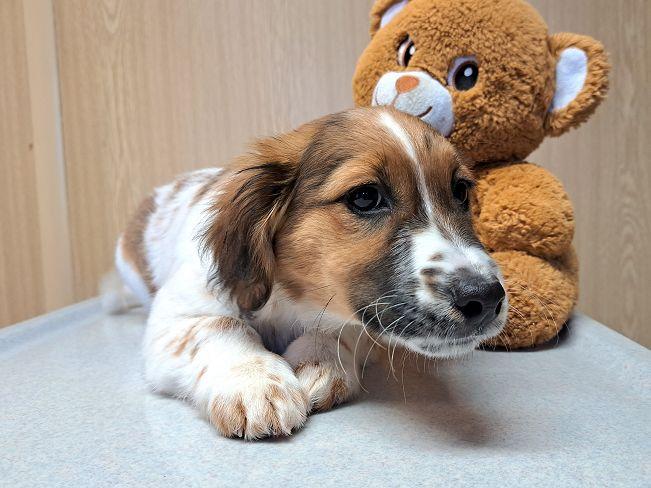Kurzinfo: freundlich, fröhlich, zugewandt, welpentypisch verspielt, verschmust, verträglich, in neuen Situationen noch schüchtern, Familie+, ältere Kinder+