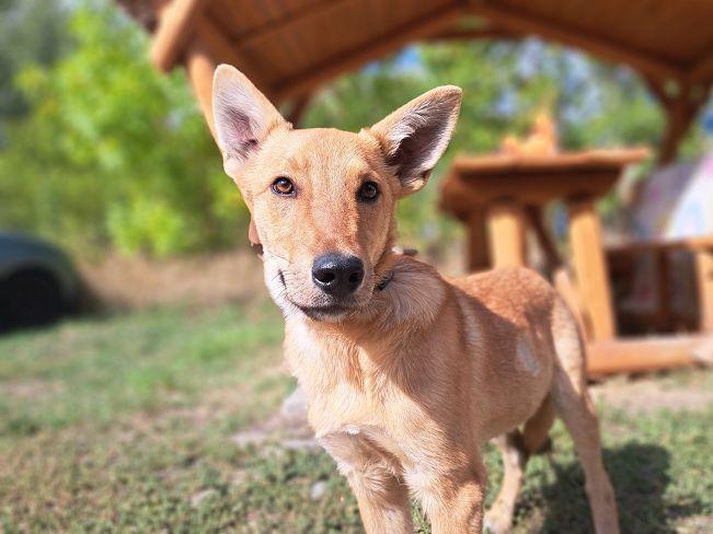 Dort angekommen zeigte sich der kleine Kerl erst einmal sehr unsicher und ängstlich. Der arme Kerl war übersäht mit Zecken, die er sich zwar eingeschüchtert, aber geduldig alle entfernen ließ. Doch schon nach wenigen Tagen taute er zunehmend auf und begann, sich wohlzufühlen. Man kann schon erkennen, dass in Joel ein fröhlicher, aktiver, neugieriger und verspielter Frechdachs steckt. Ein wunderbarer Junghund mit viel Potential!