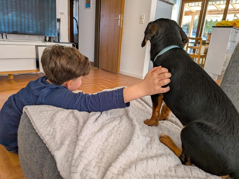 Ich bin noch nicht lange hier aber sie sind schon alle in mich verliebt. Sie sagen ich sei ein mega schnüghu. Ich muss sagen komme auch mit den kindern sollten abwr schon etwas grösser sein und katzen bestens klar bin auch stubenrein. Draussen muss ichsicher nich dies und das kernen z.b dass ich schön an der leine laufe und mein näschen ist auch gerne dem boden zugewandt. So nun hilft mir die daniela ein zu hause zu finden. Wenn du ernsthaft an mir interessiert bist und mit allen beteits geklärt ist ob ein dogi einziehen kann dann melde dich doch. Ich freue mich auf dich liebe grüsse kay