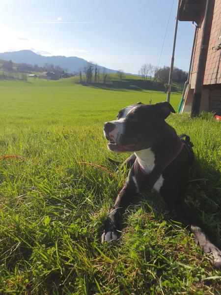 Da Lennox nicht gerne allein ist, werden Abwesenheiten aktuell auf der Pflegestelle geübt. Genauso wie der Ausbau der Grundkommandos. Lennox, alias Bubi, mag lange und abwechslungsreiche Spaziergänge und braucht eine klare und ruhige Führung. Gegenüber anderen Hunden ist er freundlich. Wir sind aber der Meinung, dass er als Einzelhund am besten aufgehoben ist. Katzen würde unser Amstaffrüde jagen. Kinder ab Jugendalter passen zum Kuschelbuben. Lennox wünscht sich gutes Essen, abwechslungsreiche Spaziergänge, gemütliche Abende auf dem Sofa und ein Garten wäre sicher das i-Tüpfchen.