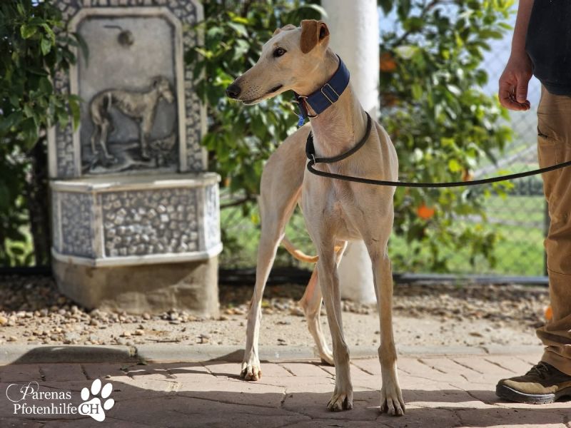 Lulea ist eine hübsche Galga mit cremefarbenem Fell. Anfangs unterwürfig und schüchtern, siegt bei ihr doch schnell die Neugier, sodass sie sich bald freundlich, verschmust und in Spiellaune zeigt. Die fröhliche Hündin wird ihr eigenes Zuhause, in dem auch andere Hunde und Katzen leben dürfen, ganz sicher mit Glück erfüllen. Kinder sollten schon etwas älter und verständiger im Umgang mit Lulea sein.