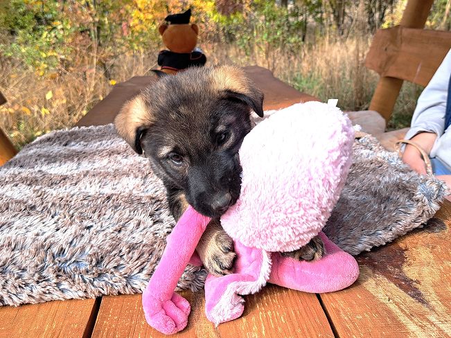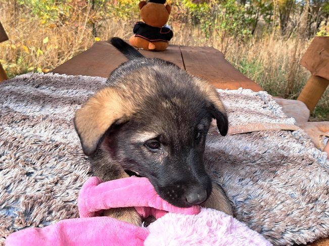Bitte bedenken Sie, dass ein Welpe die ersten Monate ein Vollzeitjob ist und 24 Stunden Betreuung braucht. Dies muss bei einer möglichen Adoption gewährleistet sein.