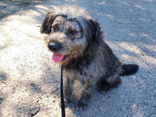 Die laut Registrierung im Januar 2022 geborene Maja hat eine ungewöhnliche Geschichte. Seit Anfang September 2025 versucht das Team des Tierheims einen ängstlichen Hund einzufangen und hat zu diesem Zweck eine Lebendfalle aufgestellt. Mitte September saß dann Maja in der Falle. Auch sie war immer wieder auf der Straße gesehen worden. Da sie einen registrierten Chip hatte, konnte die Heimleiterin Kata den Besitzer kontaktieren. Dieser zeigte aber kein Interesse, seinen Hund aus dem Heim abzuholen. Und Kata und ihr Team waren auch froh darüber, hatten sie doch inzwischen unter dem langen Fell am Kopf eitrige Wunden (vermutlich sind es Hundebisse) entdeckt, die unbedingt behandelt gehörten. Dies geschah dann auch gleich und nachdem nun alles „freigelegt“, gesäubert und genäht ist, wartet Maja nun in ihrem temporären „Schimpansenlook“ noch auf das große Glück, ein tolles Zuhause zu finden.