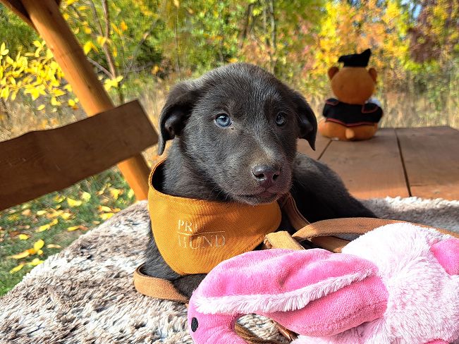 Bitte bedenken Sie, dass ein Welpe die ersten Monate ein Vollzeitjob ist und 24 Stunden Betreuung braucht. Dies muss bei einer möglichen Adoption gewährleistet sein.