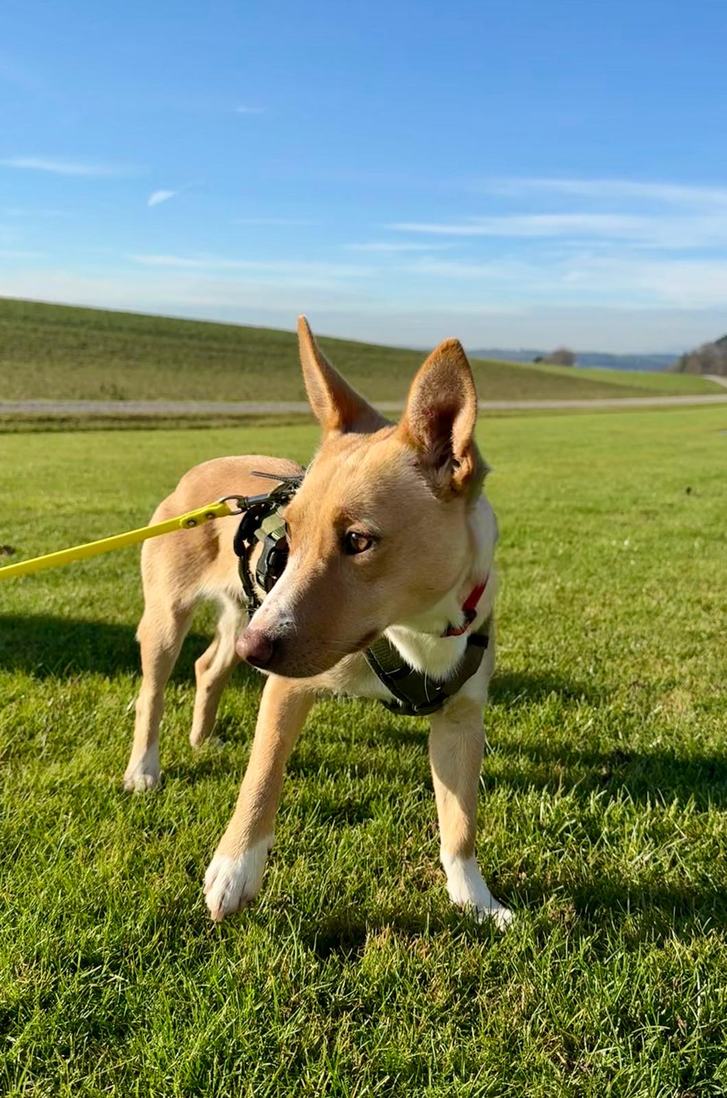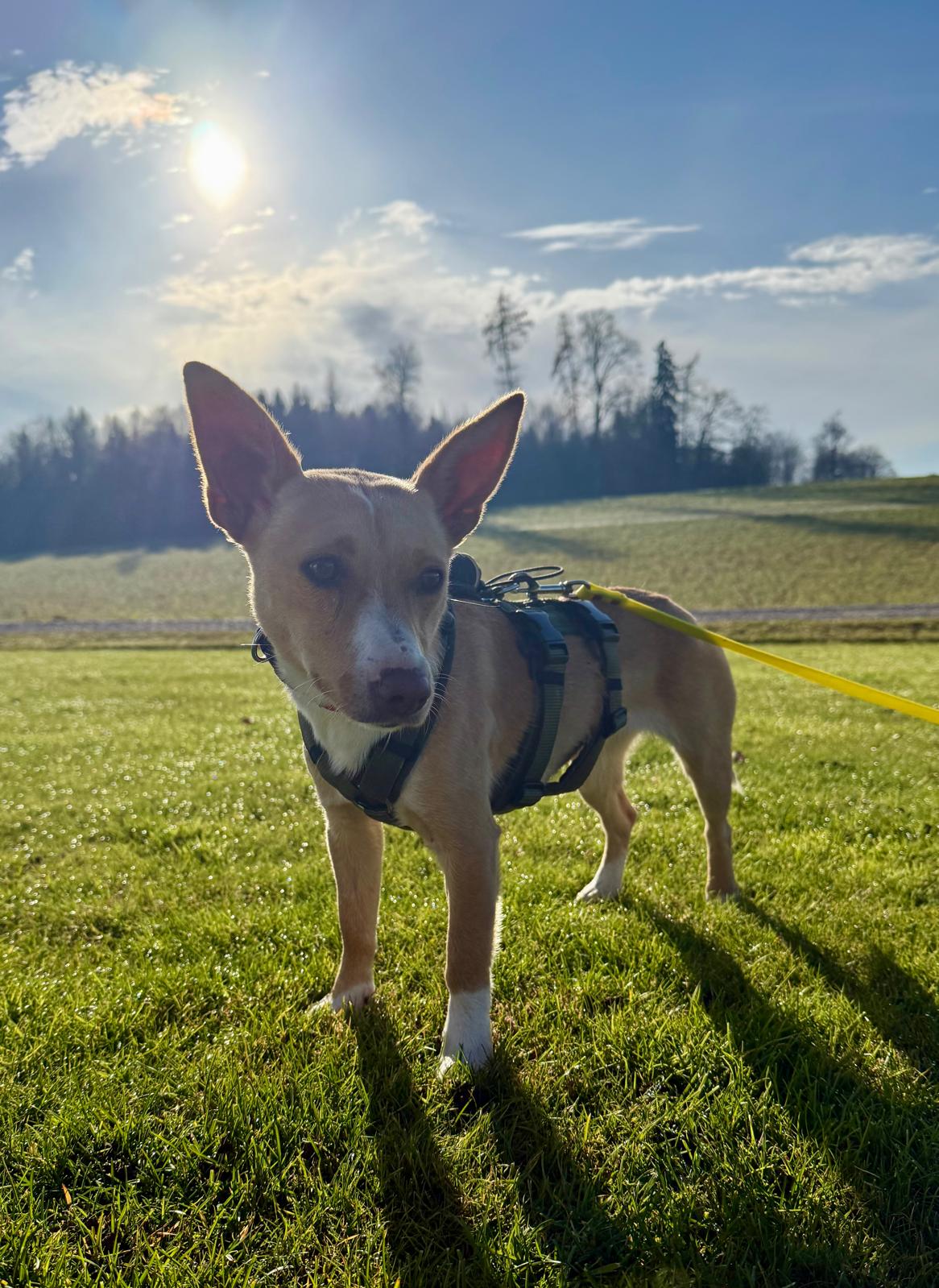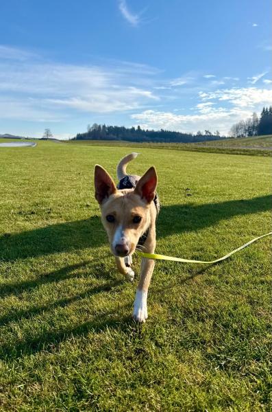 Mea ist seit dem 19. Dezember bei ihrer Pflegestelle im Kanton Zürich und hat sich dort wunderbar entwickelt. Zuhause ist sie stubenrein, entspannt und schläft sehr viel. Sie versteht sich hervorragend mit anderen Hunden und geniesst ausgedehnte Spaziergänge. Ihre Pflegestelle hat bereits getestet, dass sie etwa 1 Stunde allein bleiben kann, wenn ein Zweithund an ihrer Seite ist. Mea kennt ebenfalls bereits das Autofahren und Restaurantbesuche.