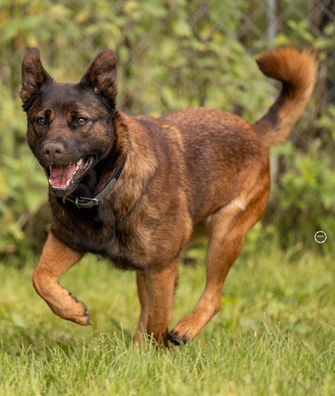 Die wunderbare Malinois Mischlingshündin Mia wurde am 02.02.2022 geboren und sie hat eine Schulterhöhe von ca. 60 cm.