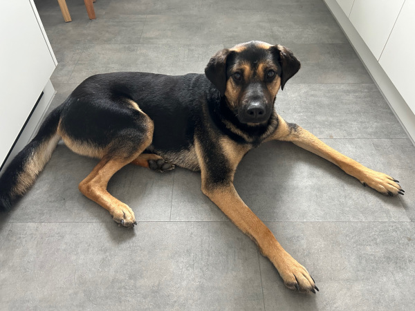 Autofahren ist für ihn momentan noch schwierig, da er zu Übelkeit neigt. Das Ein- und Aussteigen macht er inzwischen schon super und das Fahren wird weiterhin geübt. Mito ist mit anderen Hunden freundlich und fordert gerne zum Spielen auf. Katzen scheint er eher zum Jagen spannend zu finden. Bei kleinen Kindern zeigte er sich interessiert und vorsichtig, es gab aber bisher noch wenig Kontakt. Für Mito wäre eine ruhige, naturnahe Umgebung wünschenswert, da viele Reize an der Strasse für ihn anspruchsvoll sind. In der Wohnung reagiert er entspannt auf Umweltreize von draussen. Er ist ein wunderbarer Kerl, der bereits nach wenigen Wochen auftaut, gerne lernt und es unglaublich geniesst, wenn man Zeit mit ihm verbringt."