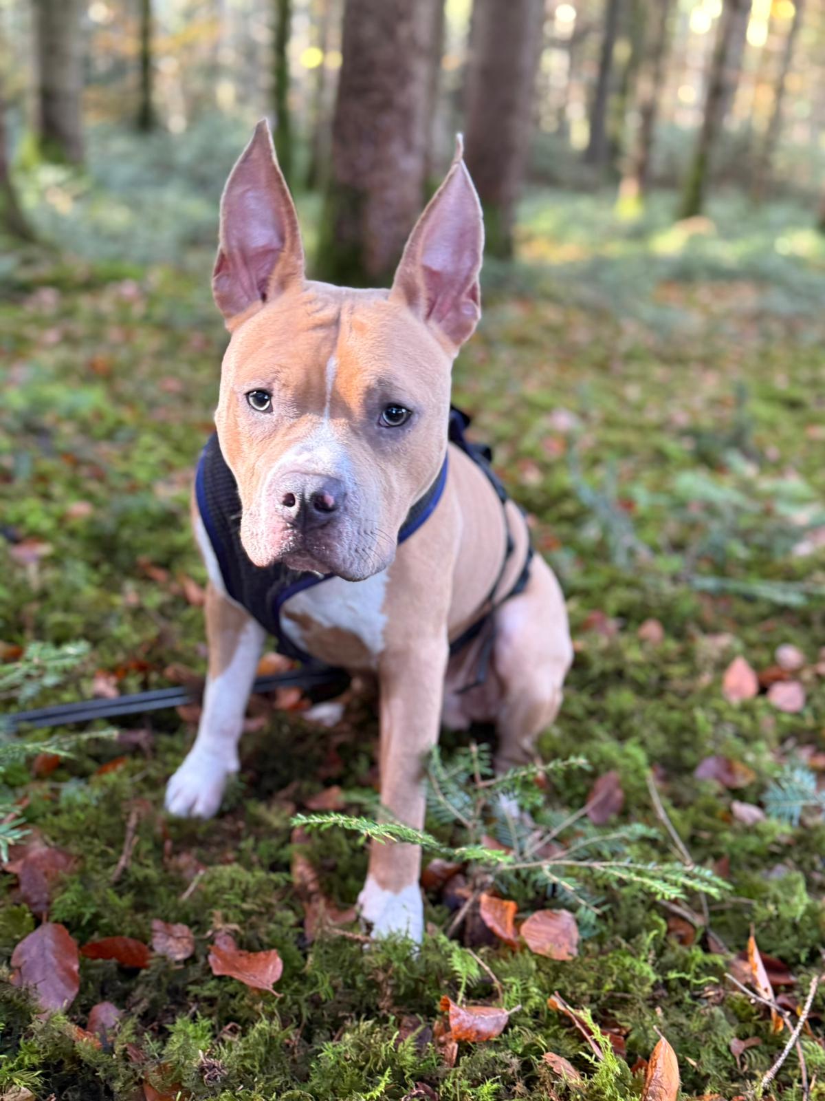 Der hübsche Nacho (29.11.2024) ist ein junger American Staffordshire-Rüde, der mit seinem offenen Wesen alle Herzen im Sturm erobert.