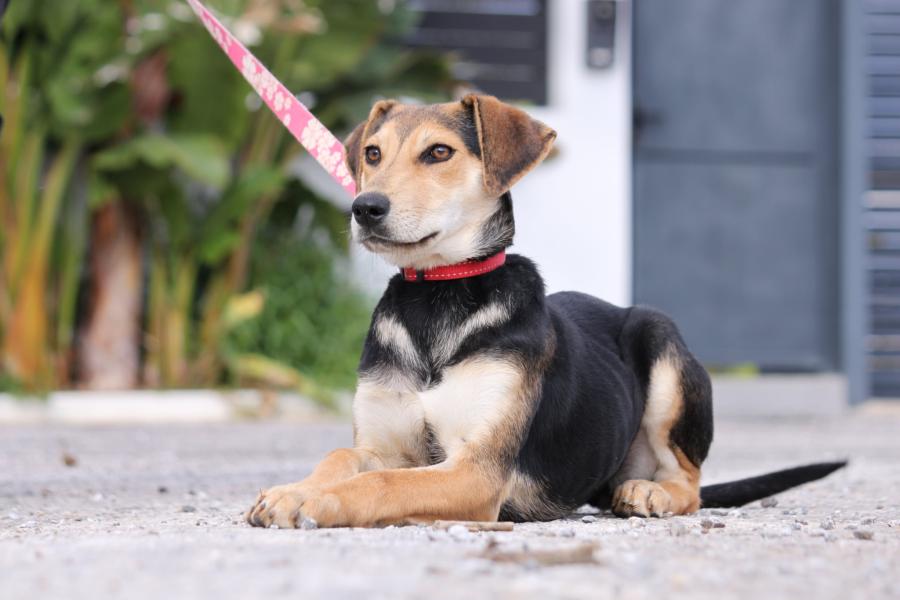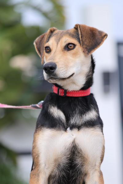 Olivia wurde weit entfernt von jeder Stadt oder Ortschaft, in der Nähe eines Sees gefunden. Sie wurde ausgesetzt und musste sich selbst durchschlagen, aber das hat ihren Lebensmut nicht gebrochen. Sie ist voller Leben und Energie und ein sehr fröhlicher Welpe.