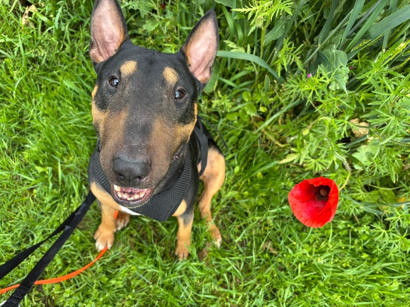 Pancho (10.07.2022) ist ein junger, sehr freundlicher Bullterrier, der am liebsten überall dabei sein möchte. Mit seinem markanten Kopf, den ausdrucksvollen Augen und seinem lebhaften Wesen ist er ein echter Blickfang. Er ist ein aufgeschlossener, fröhlicher Hund und reagiert rassetypisch gerne anfänglich überschwänglich. Mit seinem charmanten Wesen ist er ein richtiger Bullibub, der das Leben mit viel Energie und Freude geniesst.