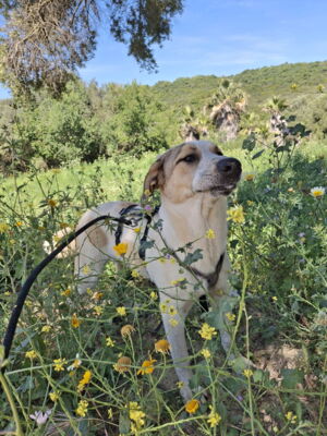 Auch das Rennen und Spielen mit seinen Artgenossen macht ihm Freude, wobei er nie Streit sucht. Er lebt mit Rüden und Hündinnen zusammen und geht problemlos in der grossen Hundegruppe in den Auslauf.