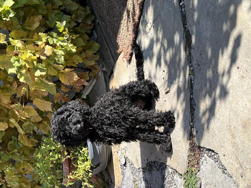 Pati, ein reinrassiger Mittelpudel, ist nun 6 Monate alt und sehr neugierig. Er lernt schnell und ist sehr aufmerksam. Er ist anhänglich und selbständig zugleich. Er kennt bereits viele Kommandos und läuft ordentlich an der Leine. Ich muss Pati aus gesundheitlichen Gründen weggeben, leider.