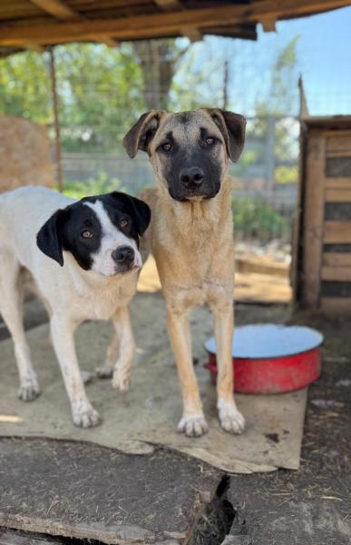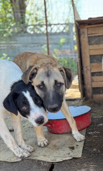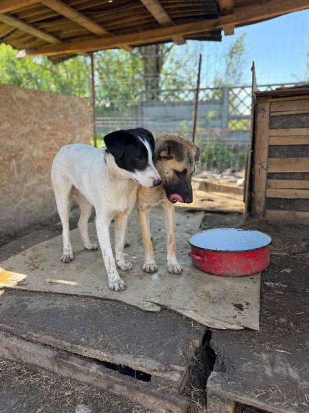 Pride und Salli sind mutmasslich Geschwister. Sie wurden im Dezember 2024 von Kindern auf einer Strasse gefunden. Rodica nahm die beiden Welpen bei sich auf und so entkamen sie dem sicheren Tod. Seither leben die beiden in einem Zwinger mit anderen Hunden und verstehen sich gut mit diesen.