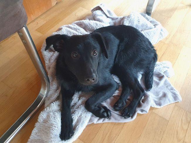 Er ist überhaupt sehr schlau und lernt schnell. Wir haben erst vor kurzem mit ein paar Kommandos angefangen, die er schon ganz gut verstanden hat, ebenso klappt der Abruf (natürlich noch gesichert an der Schleppleine) auch schon ziemlich gut. Er sucht auch immer wieder Blickkontakt und ist aufmerksam. Stubenrein war er von Anfang an und er kann auch schon eine Weile alleine bleiben.