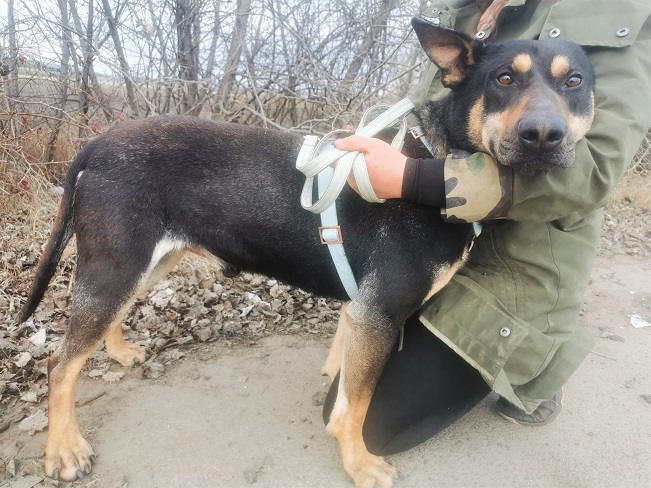 Wie auch Rexy, der im Rahmen dieser Aktion ebenfalls von einem der heruntergekommenen Höfe beschlagnahmt wurde. Der arme Kerl lebte unter besonders gravierenden Bedingungen. Er war einfach auf einer freien Fläche angekettet, ohne jeglichen Schutz vor dem Wetter. Er hatte nur ein altes Stück Schaumstoff, das aber völlig zernagt war. Als die Tierschützer kamen, hatte er auch weder Wasser noch Futter und war sehr dünn. Er bellte, wenn sich ihm jemand näherte, so dass auch der sonst so erfahrene Levente ihn nur mit dem wenn möglich nicht einzusetzenden Fangstab mit Schlinge sichern konnte.