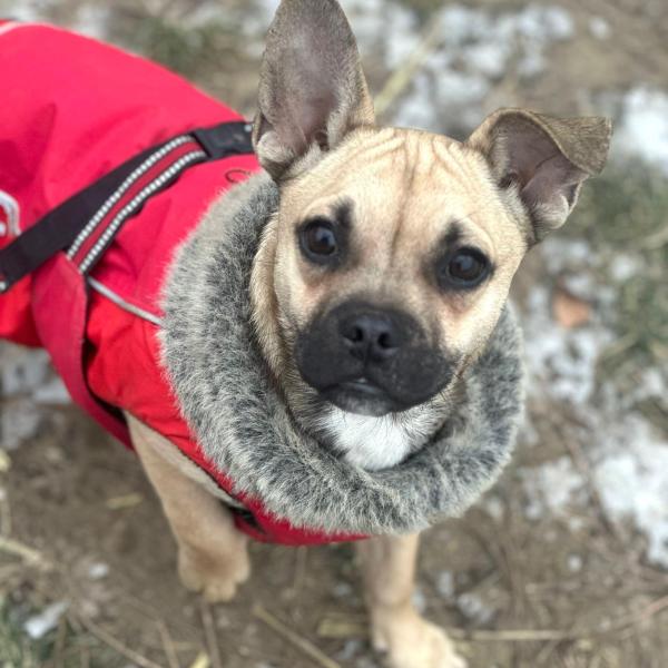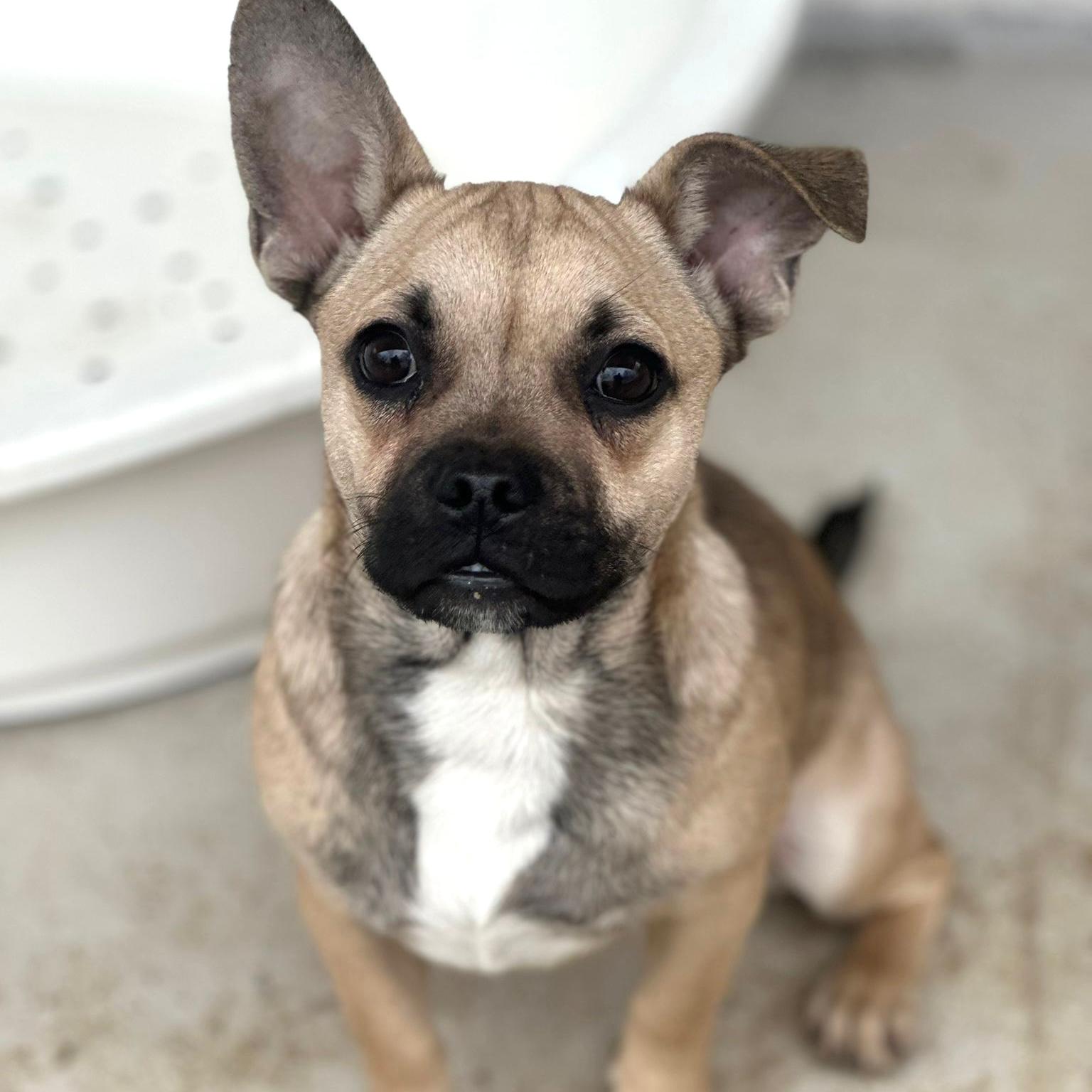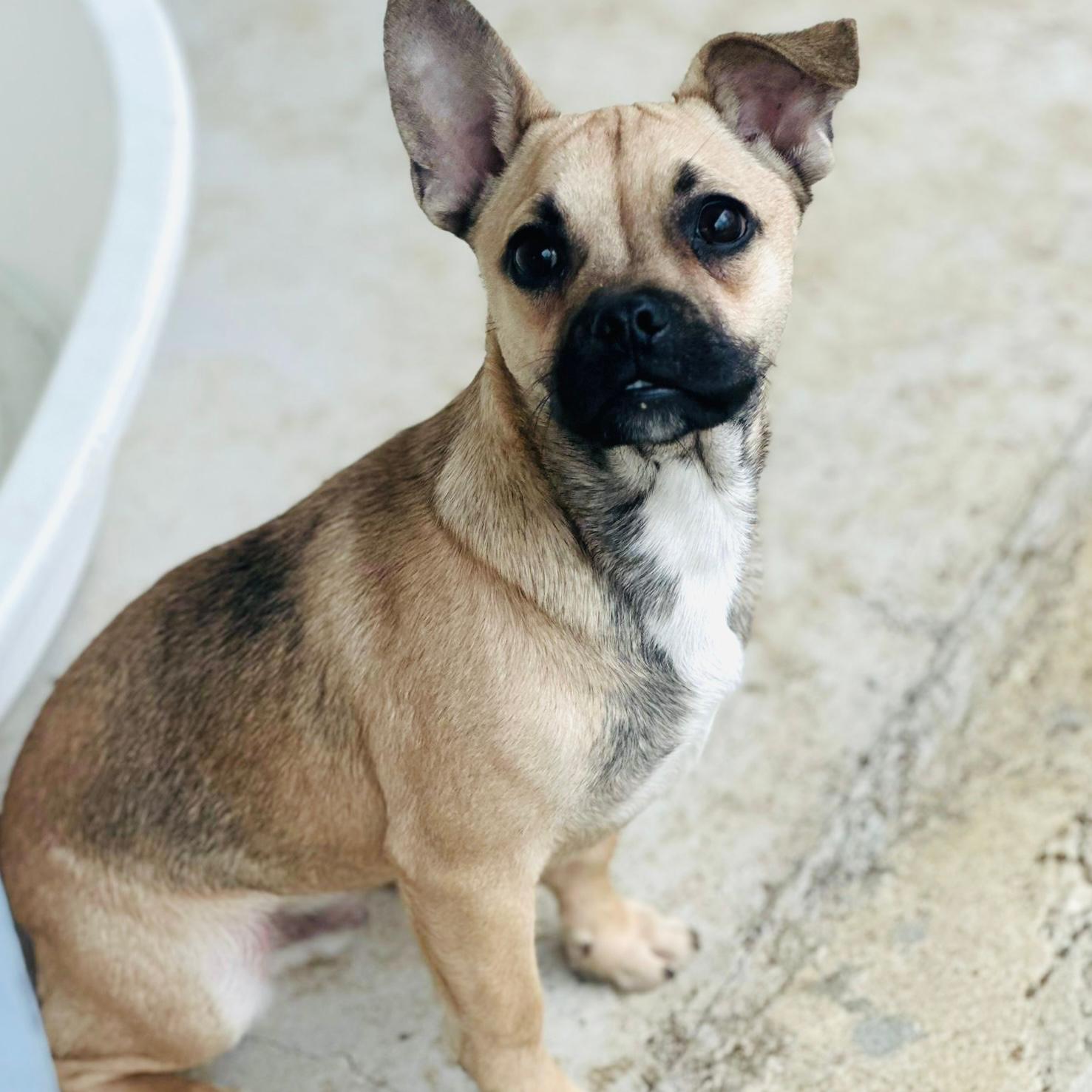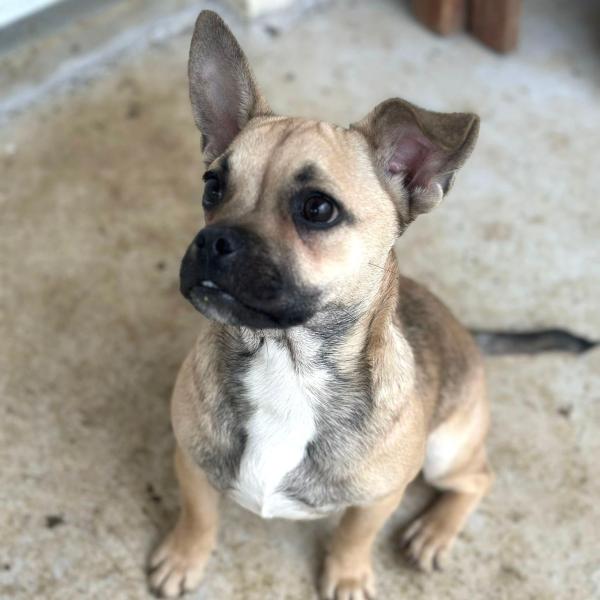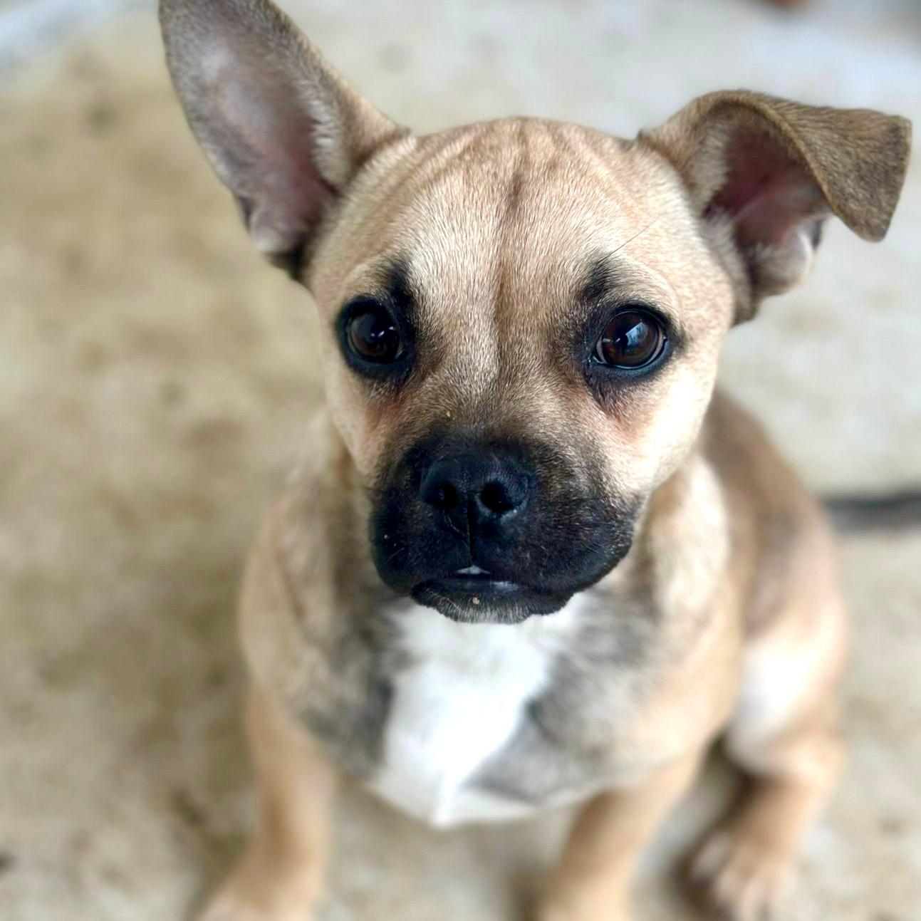 Rocky ist ein aufgestellter und fröhlicher kleiner Junghund. Sein Vater ist eine Französische Bulldogge, die Mutter eine Mischlingshündin.