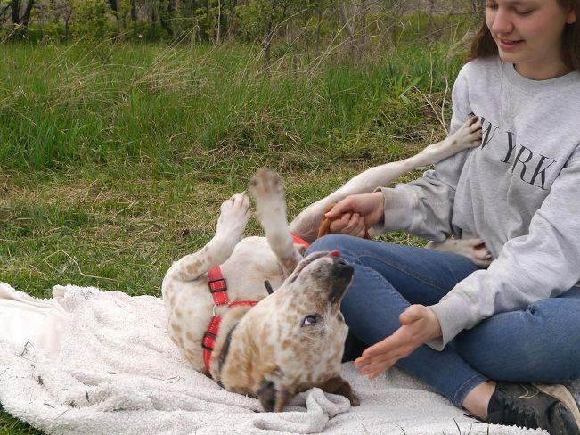 Rubino ist ein absolut menschenbezogener und freundlicher Rüde. Er ist unternehmungslustig, neugierig und bewegungsfreudig. Er ist ein sehr begeisterter und stürmischer Schmusebär, der aber auch durchaus mal innehalten und genießen kann :-).