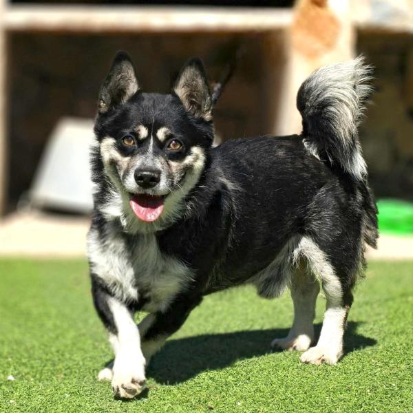 Rufo ist ein eher ruhiger, ausgeglichener Rüde mit einem ganz besonderen Erscheinungsbild: Er hat den Kopf eines Huskys und den Körper eines Dackels – ein ‘Huskel’ sozusagen, eine einzigartige Kombination, die ihn sofort unverwechselbar macht 😉 Im Tierheim zeigt sich Rufo freundlich und sozial. Mit Hündinnen versteht er sich hervorragend und spielt gern in ihrer Gesellschaft. Mit anderen Rüden kommt er gut zurecht, solange sie nicht dominant sind. An der Leine läuft er gut.