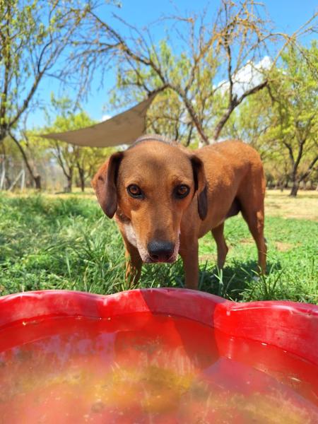 In Hopeland lebt Sandy friedlich mit anderen Hunden zusammen und ist dadurch bestens sozialisiert. Ausserdem liebt sie es, sich an heissen Tagen ins Wasser zu legen. Hat sie einen Menschen erst einmal in ihr Herz geschlossen, genießt sie Streicheleinheiten sehr - manchmal fordert sie diese sogar vorsichtig ein. Leckerlis liebt sie über alles, was sie zu einer motivierten Schülerin macht.