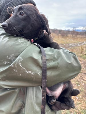 Die zauberhafte Shae zeigt sich ganz welpentypisch offen, neugierig und zutraulich. Sie begegnet Menschen freundlich und genießt Aufmerksamkeit und Nähe – ein kleines Herz auf vier Pfoten.