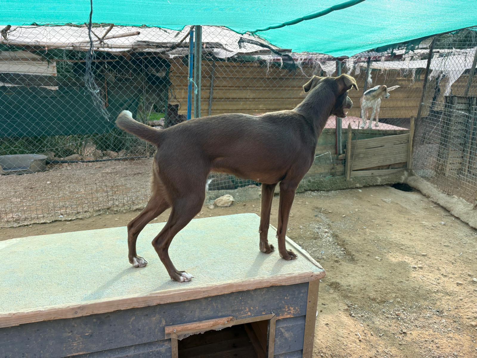 Bei Monika zeigt sich die freundliche Hündin mit der schokobraunen Fellfarbe offen und dem Menschen zugewandt, sie weiss jedoch noch nicht so genau was sie vom Besuch im Zwinger erwarten kann. Sie drängt sich nicht in den Vordergrund und wartet geduldig bis sie ihre Streicheleinheiten bekommt. Mit ihren Artgenossen ist sie gut verträglich.