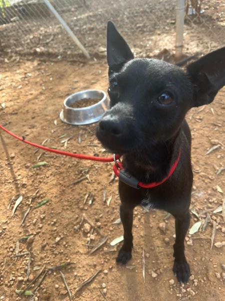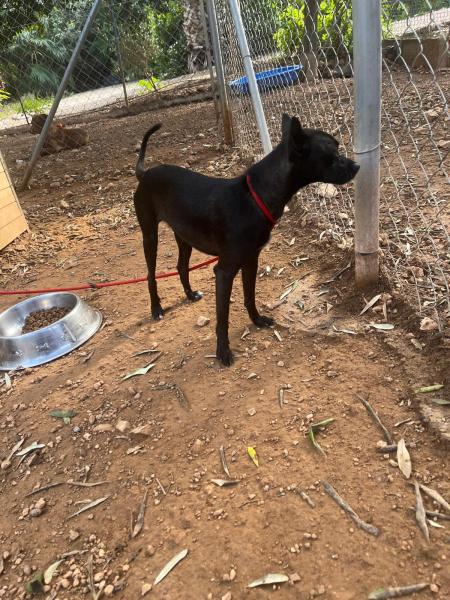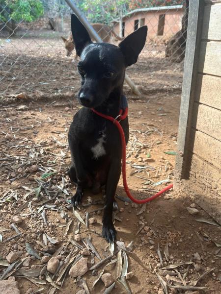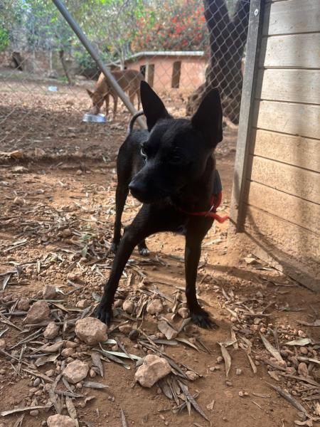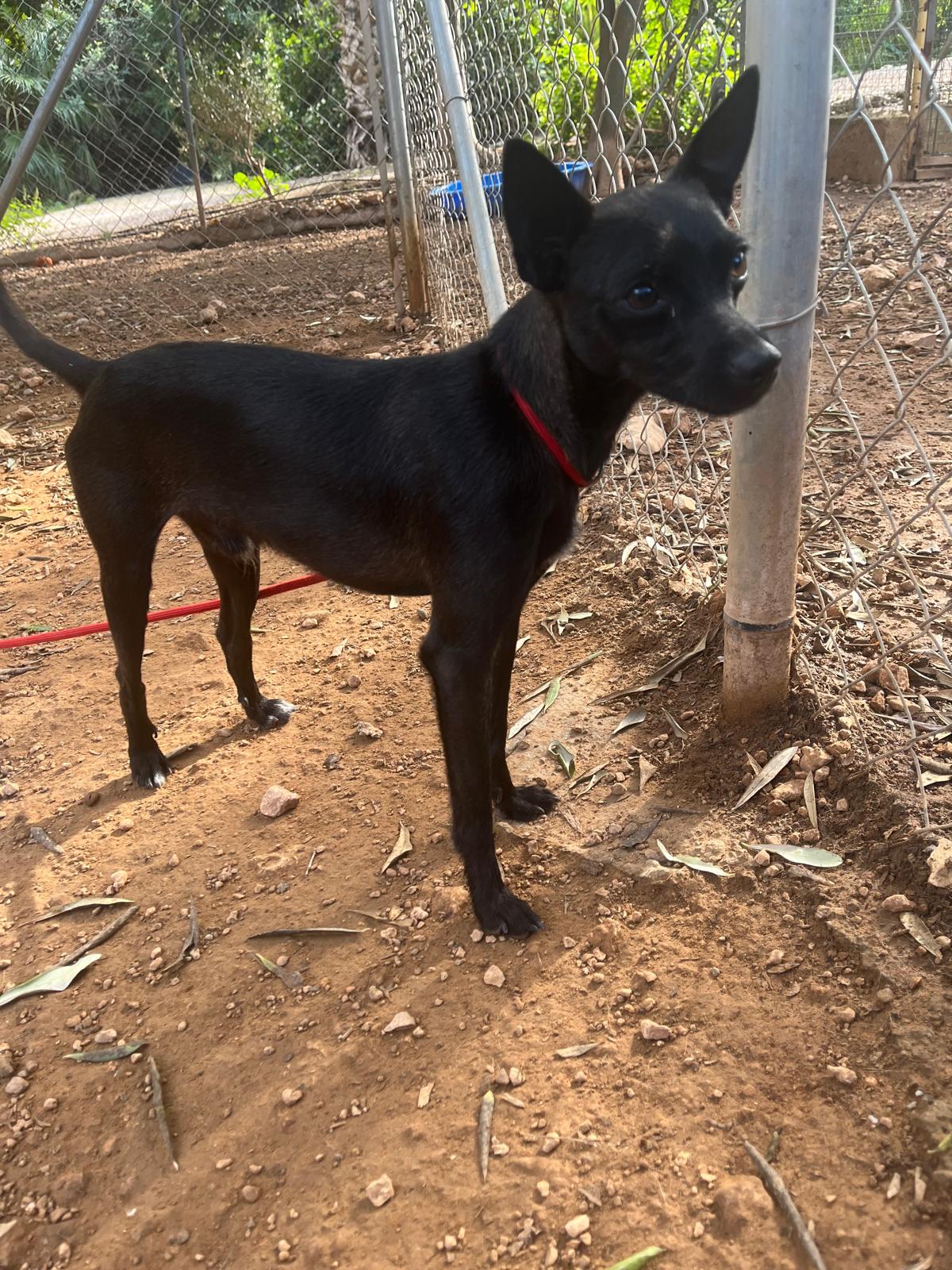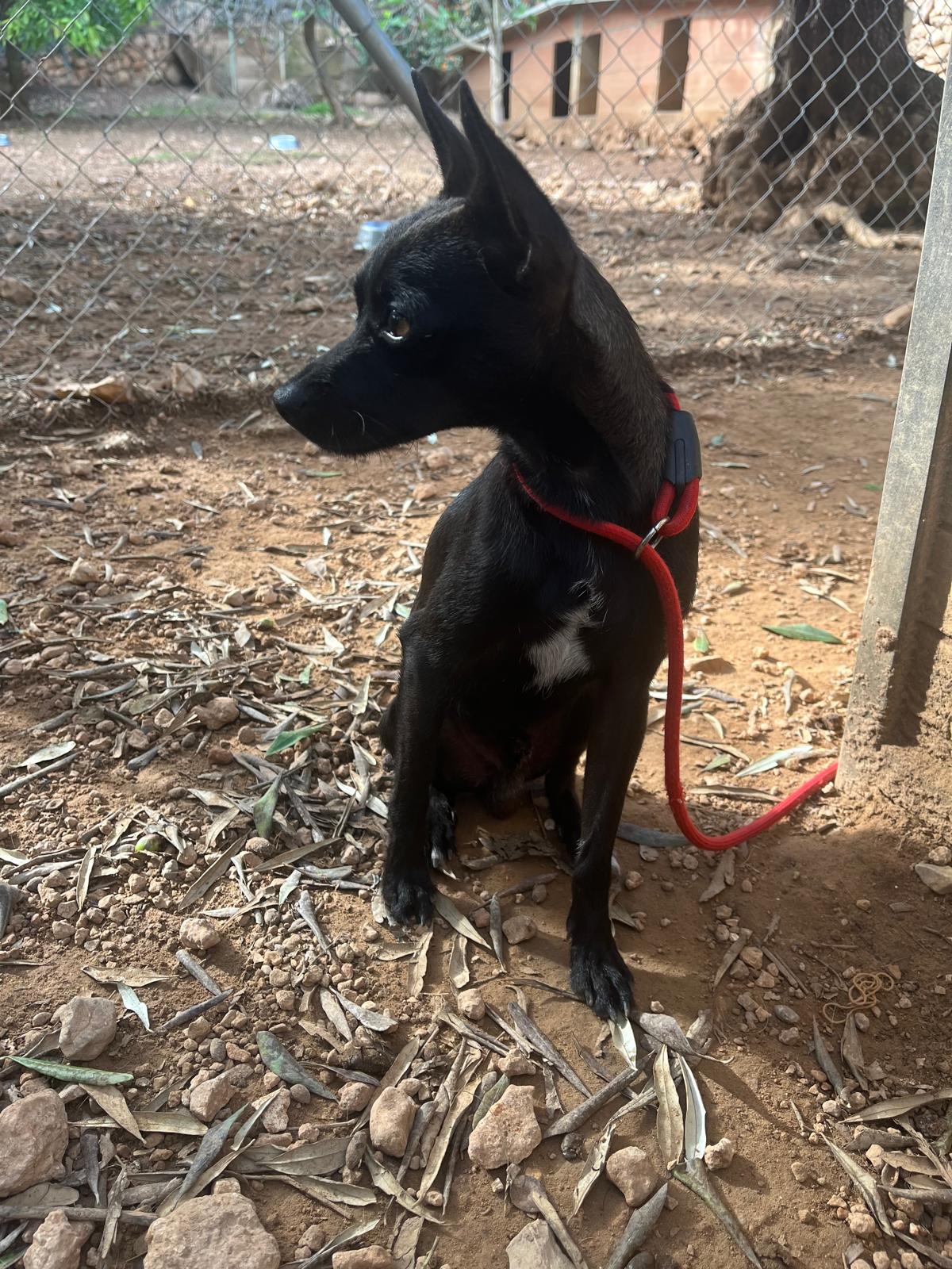 Aus der Perrera in Vinaros durfte am 13. Oktober 2025 der kleine Pinscher Mischling Smartie zu Monika ins Refugio umziehen. Der selbstbewusste Bursche im schwarzen Anzug zeigt sich seinen Artgenossen gegenüber freundlich und kommt mit allen gut aus, auch vor grossen Hunden zeigt er keine scheu und kann auch schon mal etwas frech sein. Den Menschen begegnet er stets freundlich und geniesst jede Aufmerksamkeit.