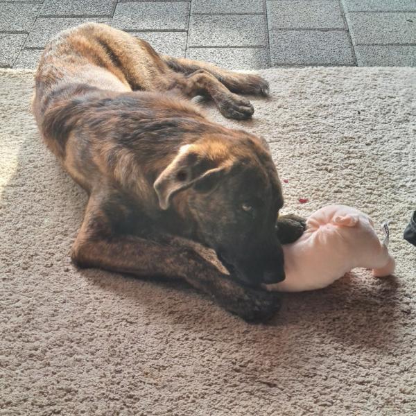 Sole ist weiterhin eine fröhliche, verspielte und liebenswerte Junghündin, die immer die Nähe zu ihrer Bezugsperson sucht.