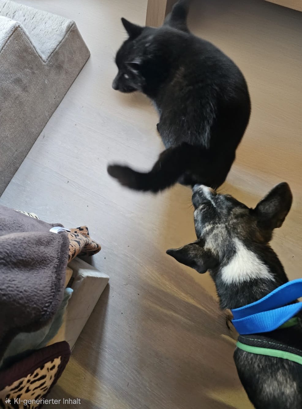 Er liebt andere Hunde und versteht sich auch sehr gut mit Katzen.