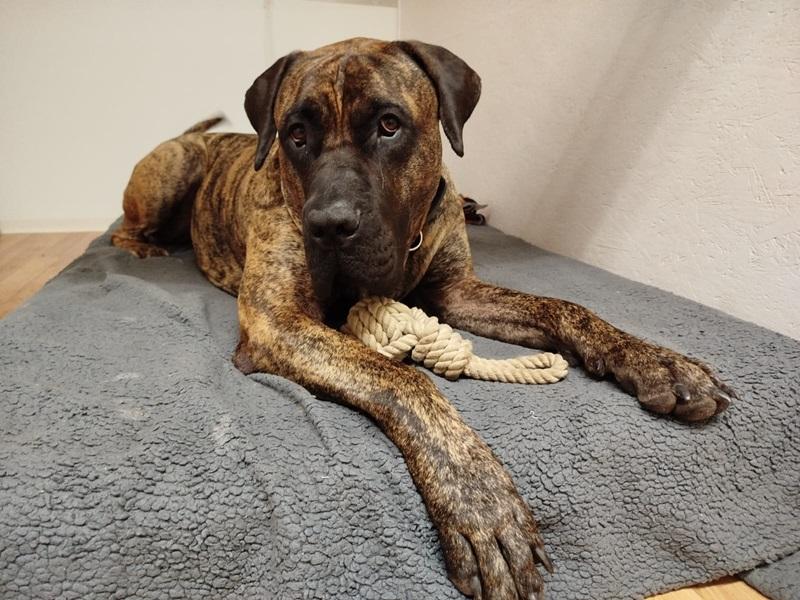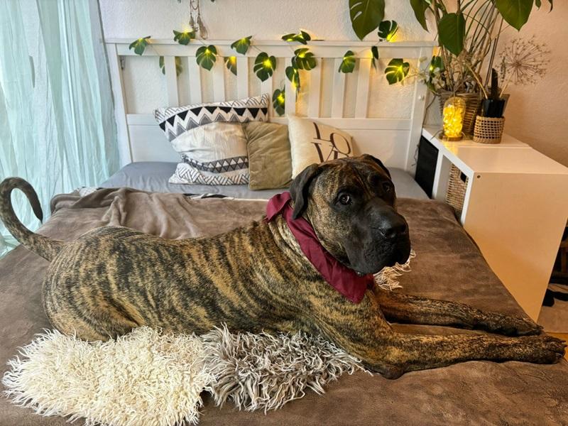 Thanos (17.10.21) ist ein bildhübscher Presa Canario, der dringend die richtigen Menschen braucht. Weil wir keine passende Pflegestelle gefunden haben, ist Thanos aktuell in einer tollen Hundepension untergebracht.