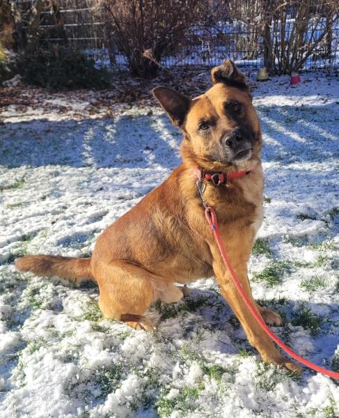 Winnie ist ein ganz toller Hund, allerdings nicht für Jedermann geeignet. Seine Optik erinnert stark an einen Deutschen Schäferhund, allerdings etwas kleiner, mit wunderschönem rotbraunem Fell und einem herzigen Stupsnäschen, was etwas an einen Rottweiler erinnert. Er wirkt von der Statur etwas bulliger als ein typischer Dt. Schäferhund und auch sein Gesichtsausdruck könnte in Richtung Bulldog/Rottweiler/Boxer gehen. Manche Menschen reagieren auf ihn mit etwas viel Respekt, weshalb wir gerne erfahrene Hundemenschen suchen, die darauf achten, dass er keine schlechten Erfahrungen macht und auch weiterhin so ein lieber und umgänglicher Zeitgenosse bleibt.