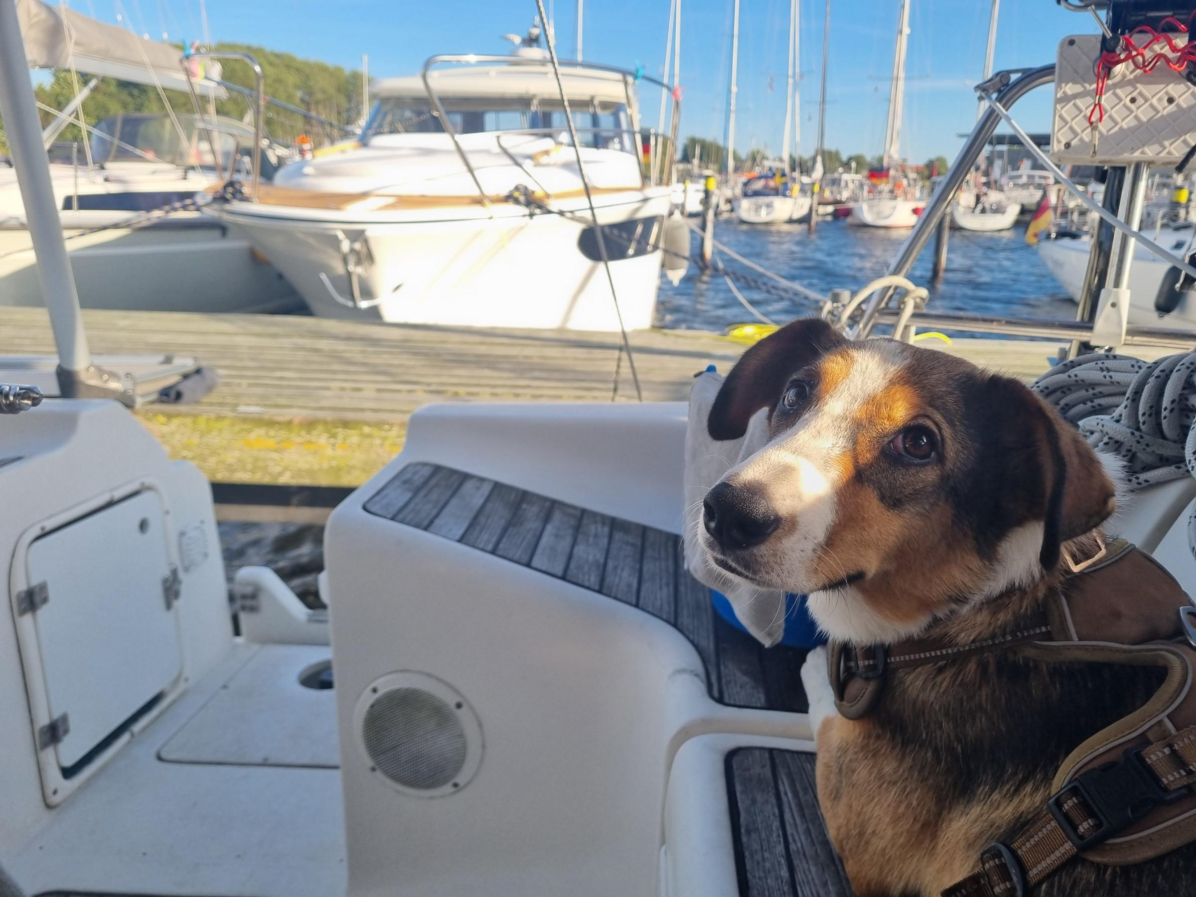Bei uns hat sie das Leben im Hunderudel gut gemeistert, kennt Autofahren und das Leben auf einem Segelboot.