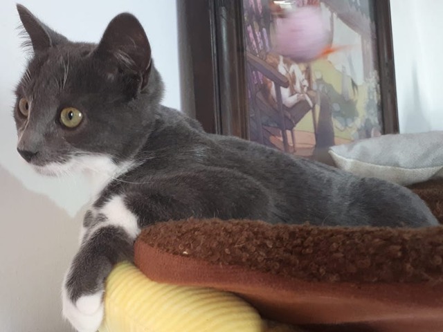 Das hübsche Russisch blaue Katerchen Alvin streifte ganz allein durch die Strassen und bettelte die Fussgänger um Futter an. Tierschützer nahmen Alvin mit und brachten ihn in die Auffangstation.