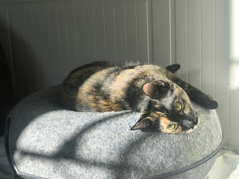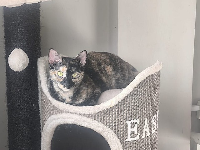 Das hübsche Schildpatt-Katzenmädchen Ambar verlor sein Zuhause, da sein Frauchen umgezogen ist und es nicht mitnehmen konnte. Nun wartet Ambar in der Auffangstation auf ein liebevolles Zuhause.