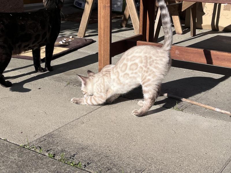 Bengalen sind sehr bewegungsorientierte, elegante Katzen, die auch kastriert kaum zunehmen, sie spielen bis ins hohe Alter. Sie brauchen Auslauf oder eine für Katzen gut eingerichtete Wohnung.
