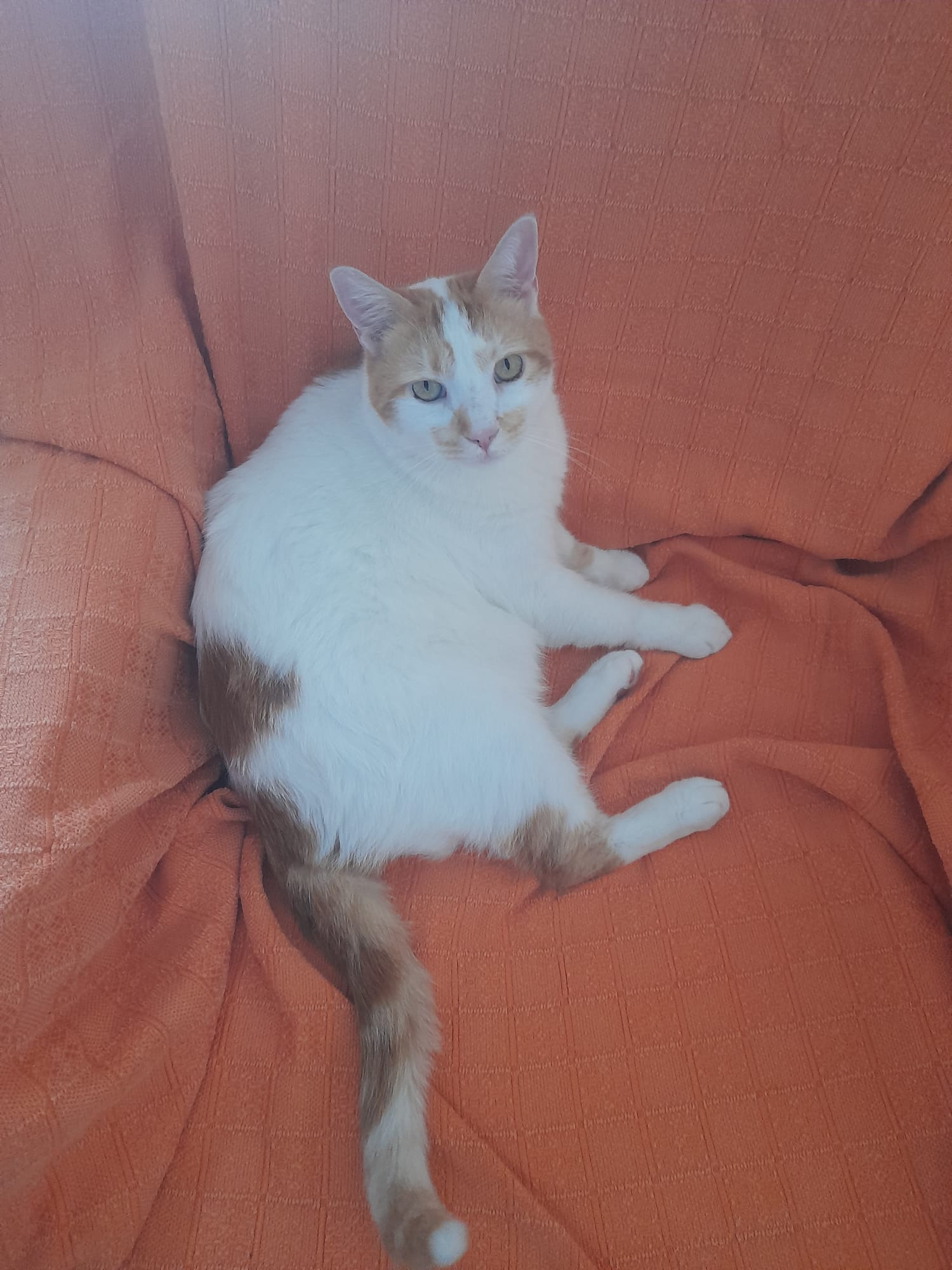 Der gross gewachsene rot-weisse Kater wurde im Sommer 2024 verletzt auf der Strasse aufgefunden und von einem engagierten älteren Herrn in Malaga bei sich aufgenommen. Die Verletzungen stellten sich als Blessuren heraus, die von einem Kampf mit Artgenossen herrührten. Blanquito schien sehr erleichtert, dass er von dem harten Leben auf der Strasse erlöst wurde und wieder einen warmen Ort mit regelmässigen Futtergaben und Streicheleinheiten hatte. Blanquito zeigte seine tiefe Dankbarkeit gegenüber dem Mann mit lautem Schnurren und Zärtlichkeiten.