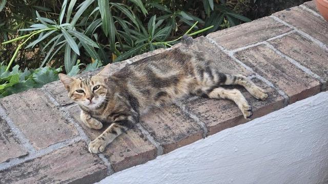 Die hübsche rötlich braun-getigerte Brownie streifte durch die Siedlung von Ferienhäusern und bettelte um Futter. Ihre Nahrungssuche war jedoch nicht ergiebig und so wog sie nach dem Einfangen nur gerade mal 2,7 kg. Nach dem Tierarztbesuch durfte sie in die Auffangstation ziehen.