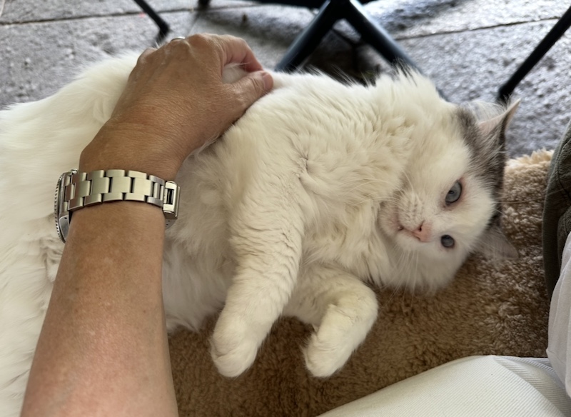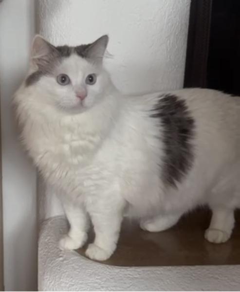 Mit sehr schwerem Herzen müssen sich nun die Besitzer zu seinem Wohl von ihm trennen, denn eine vorübergehende Ferienplatzierung in einem katzenfreien Haushalt zeigte, dass er dort nicht markierte, weniger unruhig ist und auch besser durchschläft.