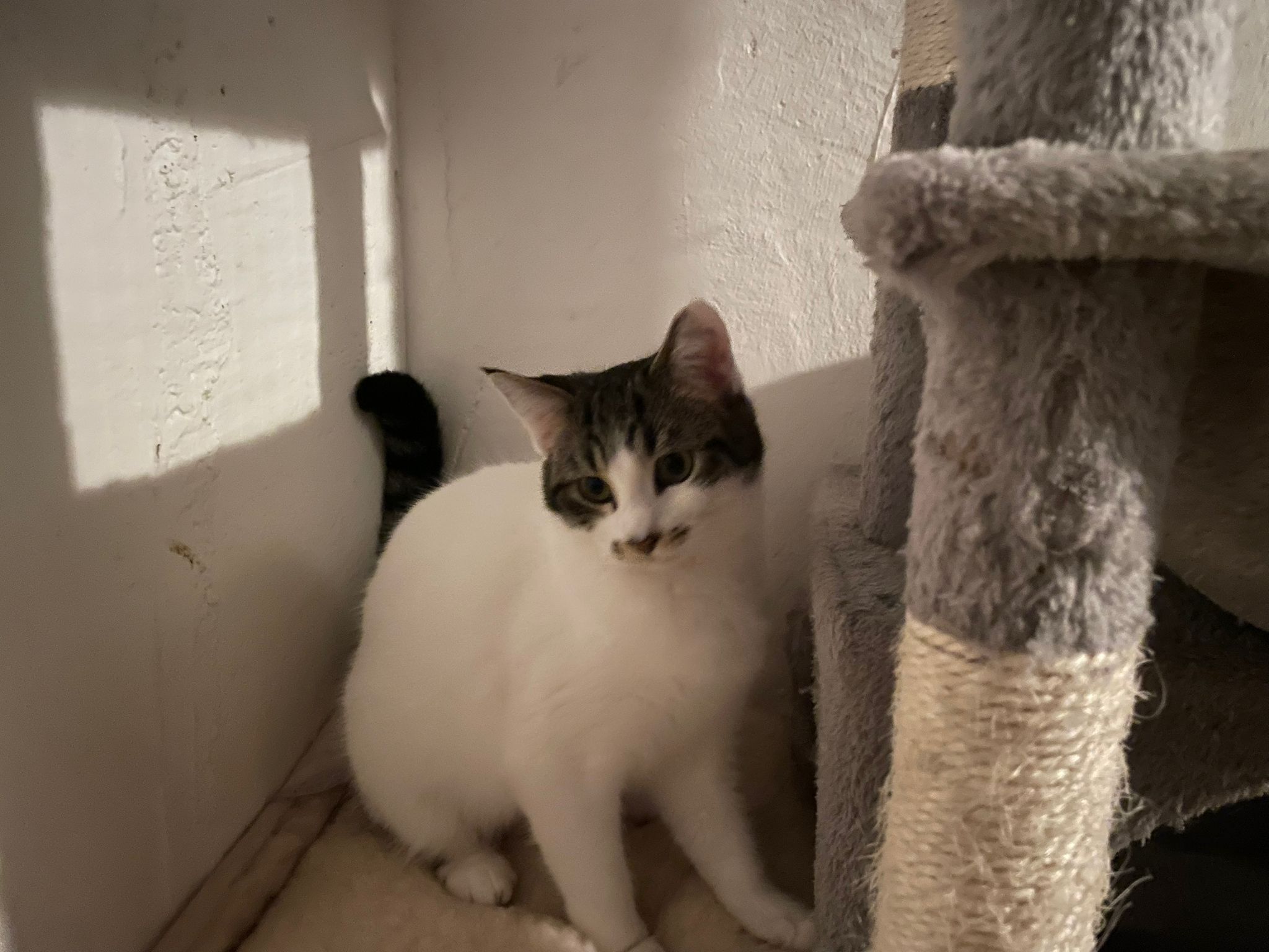 Das hübsche Katzenkind Dama wurde mit der Mama und den beiden Geschwisterchen in einer Katzenkolonie gefunden und mit der Falle eingefangen. Nach dem Tierarztbesuch durfte die ganze Familie in die Auffangstation ziehen.