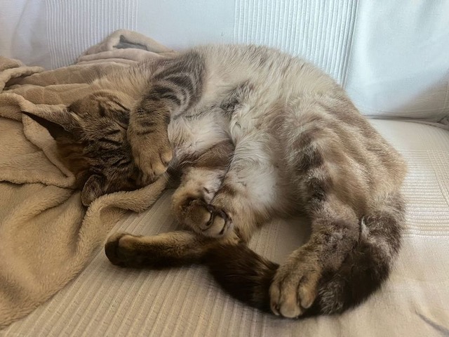 Der hübsche Siam Tabby Point Kater Dylan hatte mal ein richtiges Zuhause. Die frühere Besitzerin verliebte sich neu und zog mit ihrem Freund in ein anderes Land. Für ihren Hund und die Katze hatte sie keine Verwendung mehr. Der kleine Hund wurde weitergereicht und die Katze kurzerhand vor die Tür gestellt und dem Schicksal überlassen. So streifte er verlassen um die Häuser, wurde ab und zu gefüttert, bis ihn nun Tierschützer in die Auffangstation brachten.