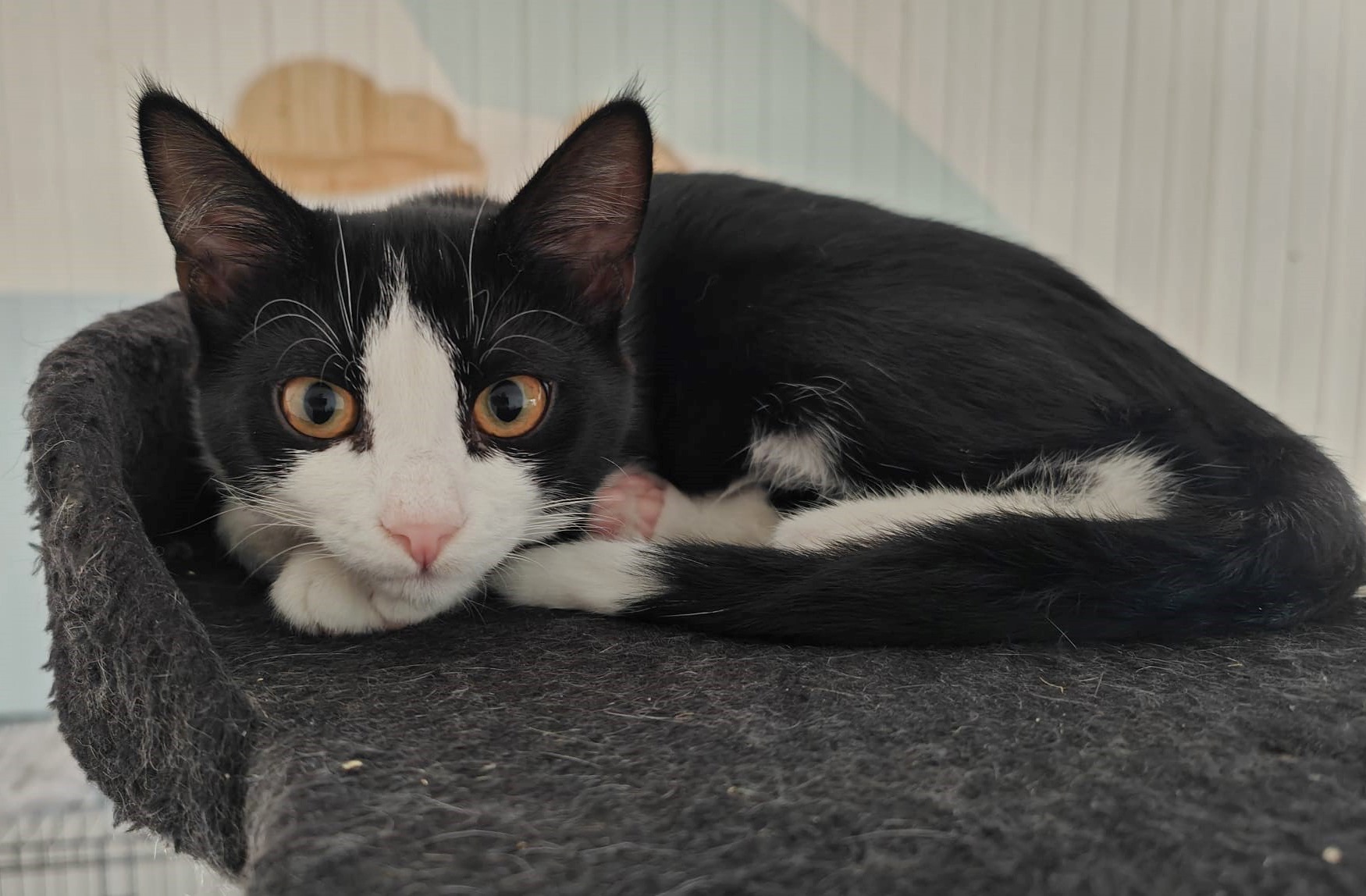 Mit Geduld, Einfühlungsvermögen und Leckerlis wird das Vertrauen von Ginny sicher weiter wachsen. Wir vermitteln sie zu einer etwa gleichaltrigen Katze, damit sie weiterhin gemeinsam spielen und voneinander lernen können.