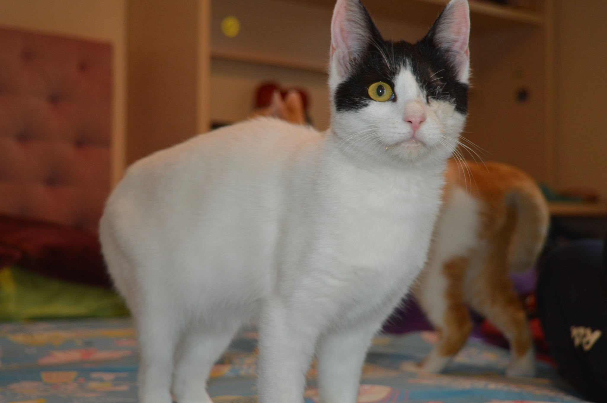 Und doch schnurrte sie bei jedem Tierarztbesuch – dankbar, dass sich endlich jemand kümmerte. Heute ist sie etwa 1–2 Monate alt, einäugig und wunderschön. Sie ist verspielt, sozial und voller Liebe – aber viel zu vertrauensvoll, um draußen zu überleben.