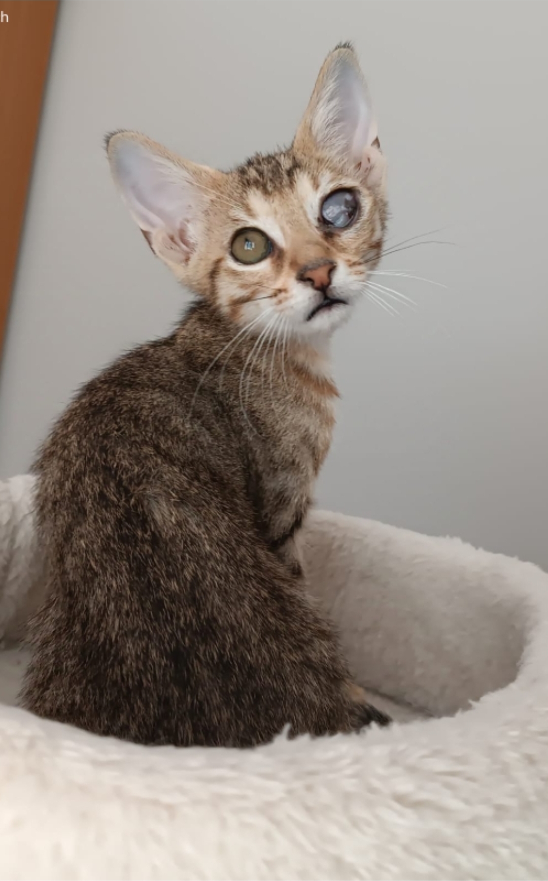 Als ich noch ein ganz kleines Kitten war, wurde ich krank und viel zu schwach auf der Straße gefunden. Mein rechtes Auge war stark beschädigt und konnte nicht gerettet werden. Doch was damals aussah wie ein schwerer Start, hat mich nicht aufgehalten. Mit guter Pflege, Geduld und Liebe durfte ich wachsen, stark werden und entdecken, wie viel Freude das Leben bereithält.