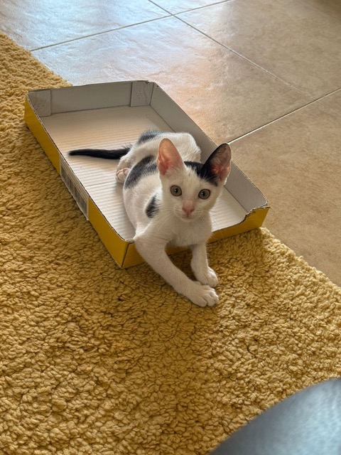 Das hübsche schwarz-weisse Katzenkind Katy wurde durch eine Tierschützerin auf dem Feld gefunden und mitgenommen. Nach dem Tierarztbesuch dufte es in die Auffangstation ziehen.