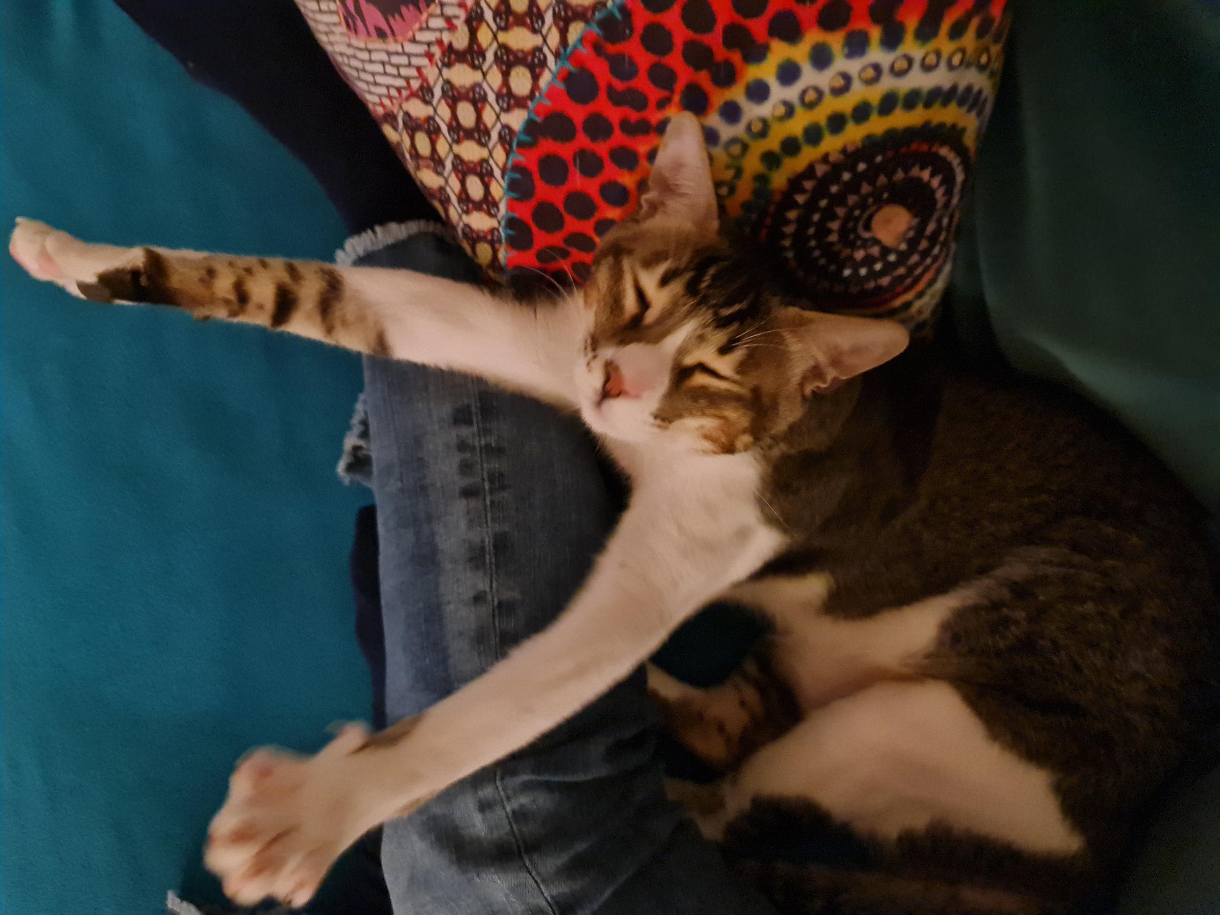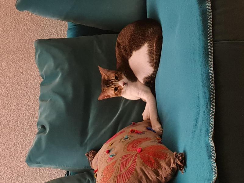 Aber dann, er hört seinen Namen! Will da jemand kuscheln? Egal, wo er sich befindet, er kommt sofort angerannt und springt auf den Schoss oder legt sich daneben. Das Köpfchen muss aber auf dem Schoss des Menschen liegen!