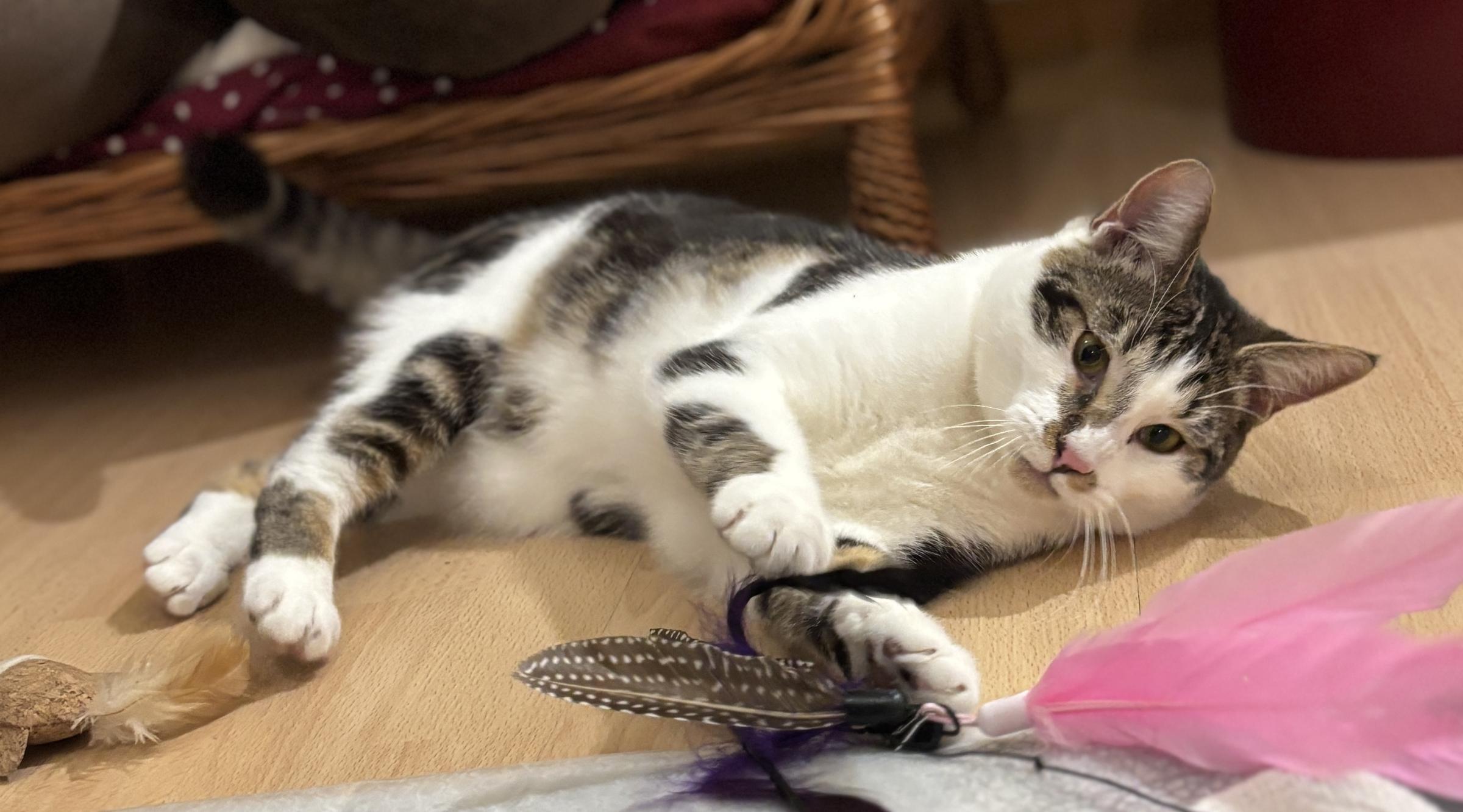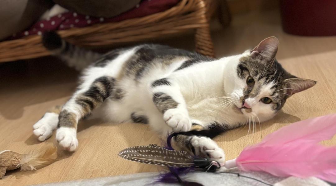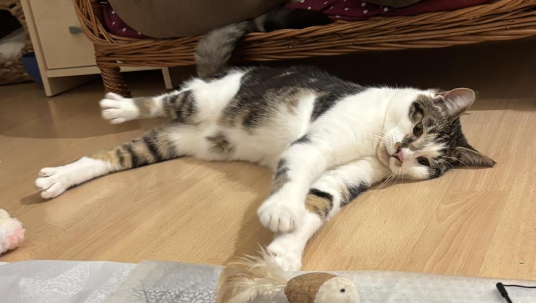 Seine Schwestern haben ein Zuhause gefunden und Loki ist nun übrig. Er ist noch etwas schüchtern, aber ein sehr feiner, lieber Kerl, der gerne spielt und sich auch streicheln lässt. Er lebt problemlos mit einem kleinen Hund zusammen und taut von Tag zu Tag mehr auf.