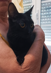 Der hübsche Lolo mit dem nachtschwarzen, glänzenden Fell ist blind. Er wurde auf der Landstrasse im Hinterland von Malaga von einer Touristin als handgrosses Fellbündel mit verklebten Augen aufgefunden. Die lokale Tierschutzorganisation, bei der er abgeben wurde brachte ihn zum Tierarzt. Nach eingehender Untersuchung musste leider festgestellt werden, dass der Sehnerv bei beiden Augen zerstört war.