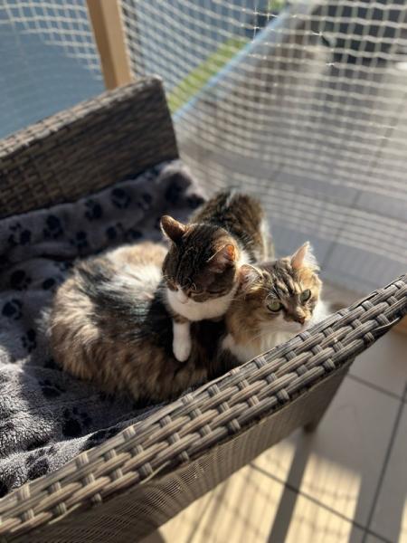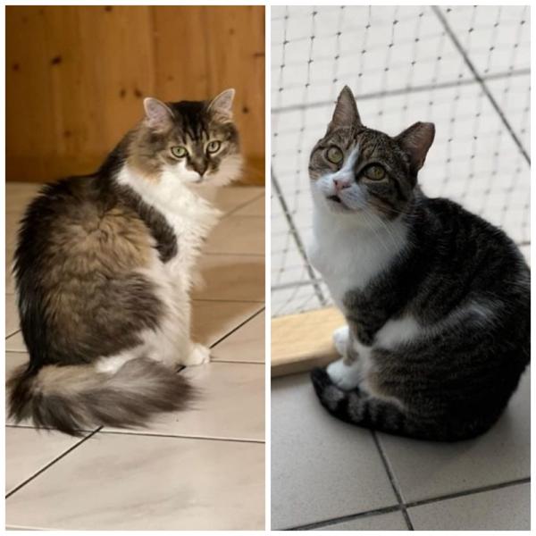 Unterschiedlicher könnten zwei Katzen nicht sein und trotzdem oder gerade deswegen sind die zwei unzertrennlich. Leider wurde ihre Besitzerin krank und musste die zwei abgeben. Als wäre das nicht schlimm genug, bemerkten die neuen Besitzer in den ersten Tagen eine Katzenhaarallergie und so kamen die beiden zu uns auf eine Pflegestelle.