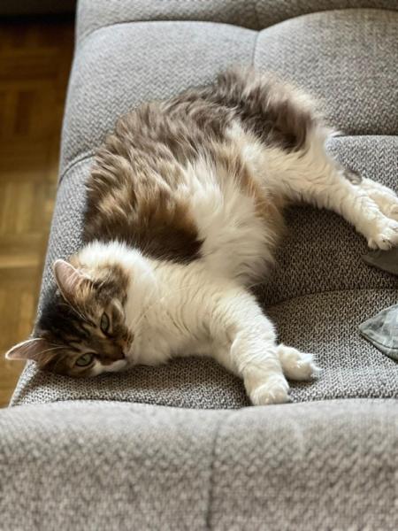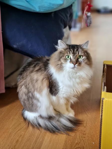 Matteo (02.04.20) ist ein wunderschöner Langhaarkater. Er ist noch scheu und misstrauisch, hat aber schon grosse Fortschritte gemacht. Immer mehr findet er das Vertrauen zu seinen Menschen und sucht langsam den Kontakt zu ihnen. Aktuell ist er sehr geräuschempfindlich und schreckhaft, was sich hoffentlich bald legen wird. Matteo orientiert sich stets an seiner Loulou. Er läuft ihr hinterher und beobachtet gerne, was sie so tut und macht. Auch Matteo hat das Spielen entdeckt und hat - wie seine bessere Hälfte - Freude und Spass an Spielmäuschen und Katzenminzekissen.
