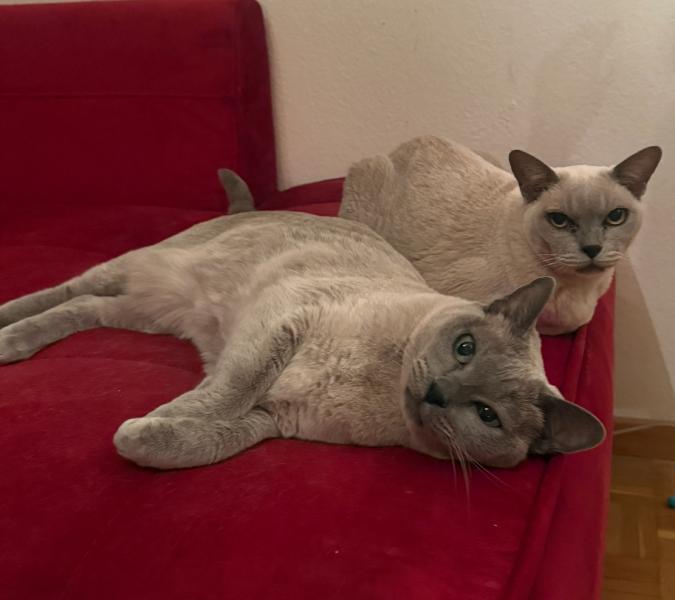Die reinrassige Burma-Lilac-Kurzhaarkatze MĂ€iti (geb. 31.12.2009) und ihre Tochter Gracy, eine reinrassige Tonkinesen-Kurzhaarkatze (geb. 28.01.2011), suchen gemeinsam ein liebevolles, ruhiges Zuhause.
