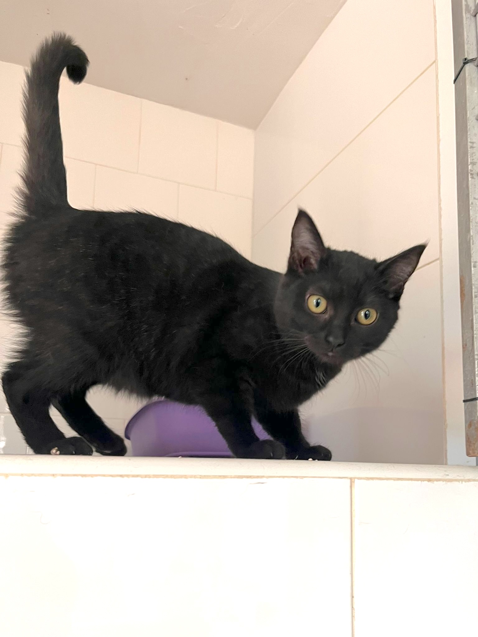 Auch im Tierheim zeigte sich Marie anfangs sehr scheu. Wenn sich jemand näherte, zog sie sich in eine Ecke zurück, und es brauchte Zeit, bis man sie anfassen durfte. Doch Marie hat grosse Fortschritte gemacht. Heute lässt sie sich problemlos hochnehmen und zeigt auch ihre verspielte Seite. Mit Begeisterung rennt sie durch den Raum und klettert neugierig an der Tür der Quarantänestation hoch. Marie ist ein sensibles Kätzchen, das Vertrauen braucht, hat man dieses einmal gewonnen, entpuppt sie sich als fröhliche, verspielte Begleiterin.